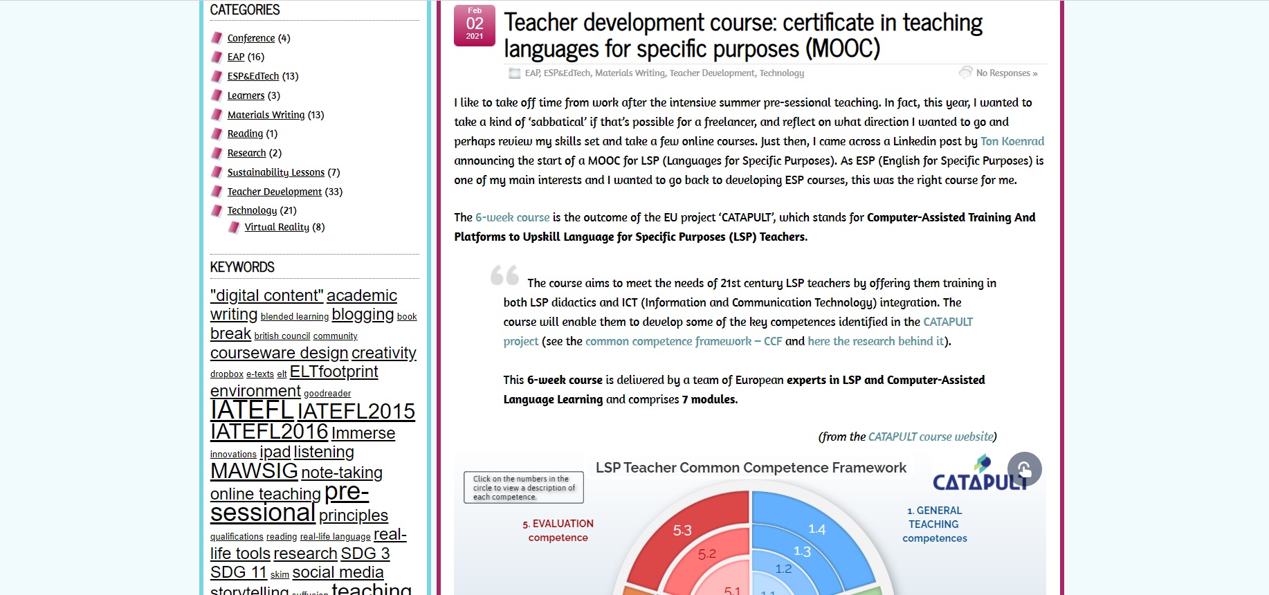 CATAPULT Network Teaching LSPs - Season 4 March 6, 2022 - May 8, 2022 The CATAPULT Project's LSP MOOC is a Continuing Professional Development (CPD) course for...