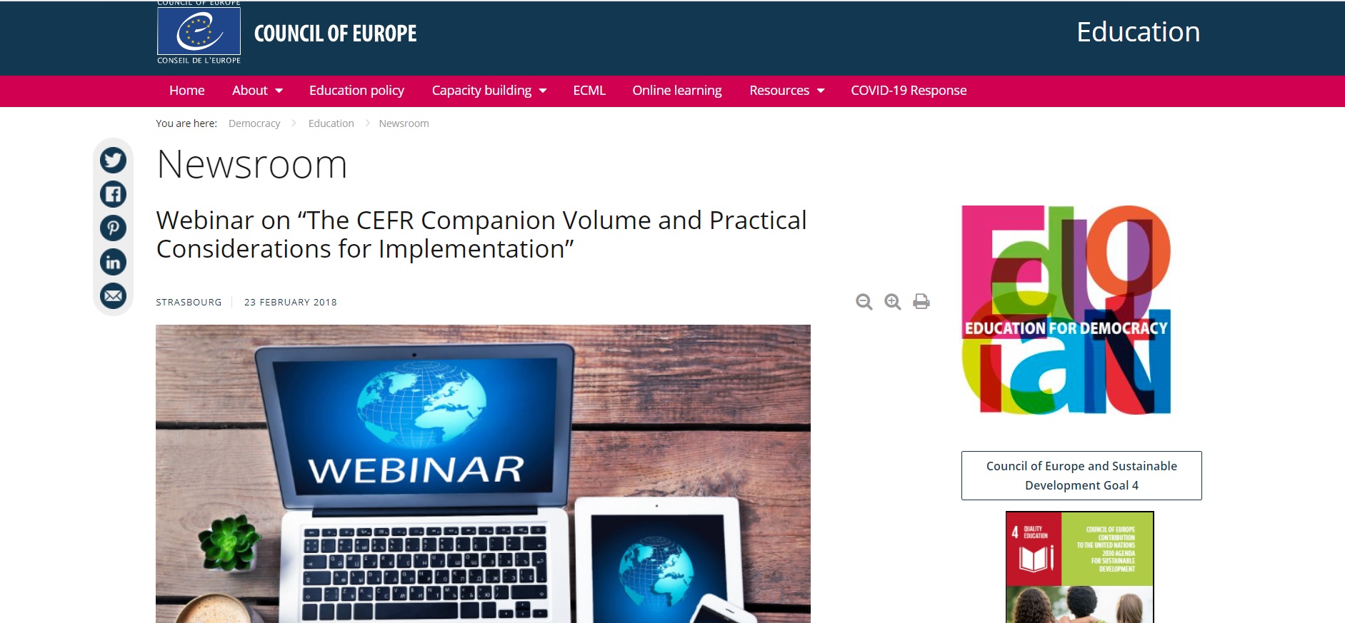 COUNCIL OF EUROPE: CEFR Companion Webinar series